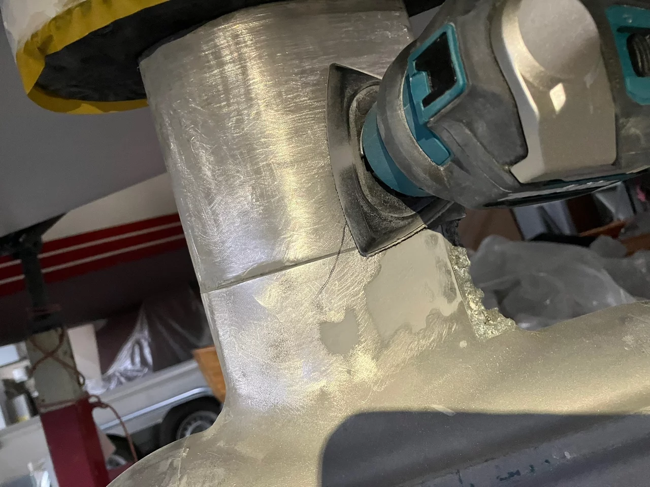 Antifouling-Reste habe ich dann abgeschliffen. Das ging mit