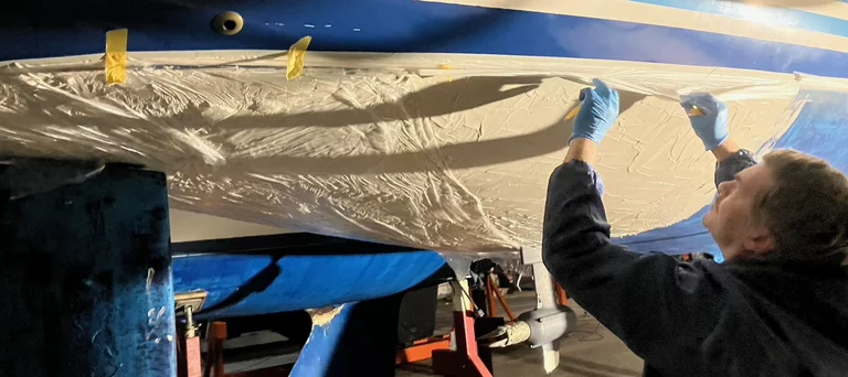 Antifouling-Folien am Rumpf - Gummistiefel fürs Boot