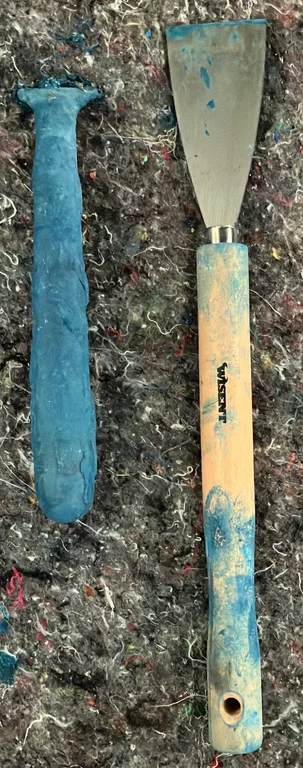 Mit Spachtel ca. 5 mm dick auftragen. Später mit Zahnspachtel,