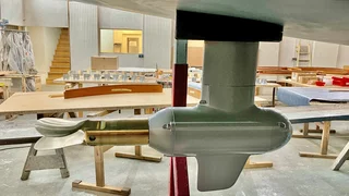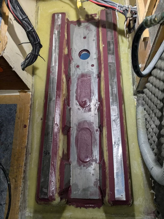 Um den POD-Antrieb möglichst großflächig und robust mit dem Rumpf zu verbinden, habe ich Konterplatten für Batteriefundament, Batterieauflager und Fundament des POD-Antriebs einlaminieren lassen.